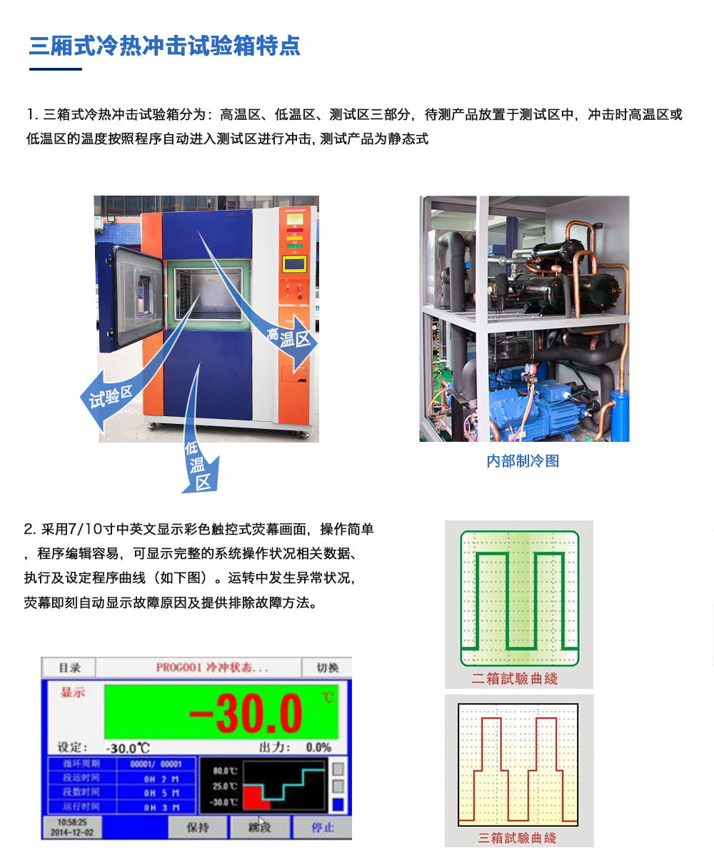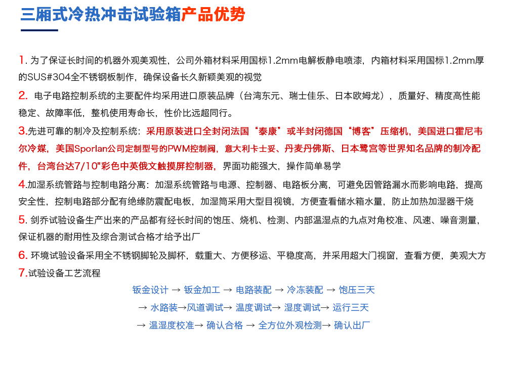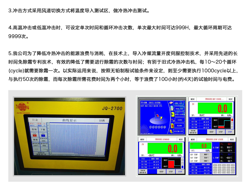 產(chǎn)品型號(hào):JQTS3-408 品牌:劍 喬 用途:三箱式冷熱沖擊試驗(yàn)箱又名溫度沖擊試驗(yàn)或高低溫沖擊試驗(yàn)是用于考核產(chǎn)品對周圍環(huán)境溫度急劇變化的適應(yīng)性,裝備設(shè)計(jì)定型的鑒定試驗(yàn)和批產(chǎn)階段的例行試驗(yàn)中不可缺少的試驗(yàn),在有咨詢熱線:13829135130