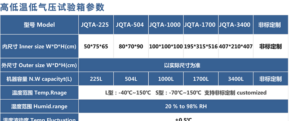 產(chǎn)品型號(hào):JQTA-504 品牌:劍 喬 用途:高低溫低氣壓試驗(yàn)箱,簡(jiǎn)稱(chēng)低氣壓試驗(yàn)機(jī)、低氣壓(高度)試驗(yàn)箱、高低溫濕熱低氣壓試驗(yàn)箱,適用于電工、電子產(chǎn)品及其他產(chǎn)品、零部件及材料進(jìn)行低氣壓試驗(yàn)的環(huán)境試驗(yàn)箱設(shè)備,可滿(mǎn)足電工咨詢(xún)熱線(xiàn):13829135130