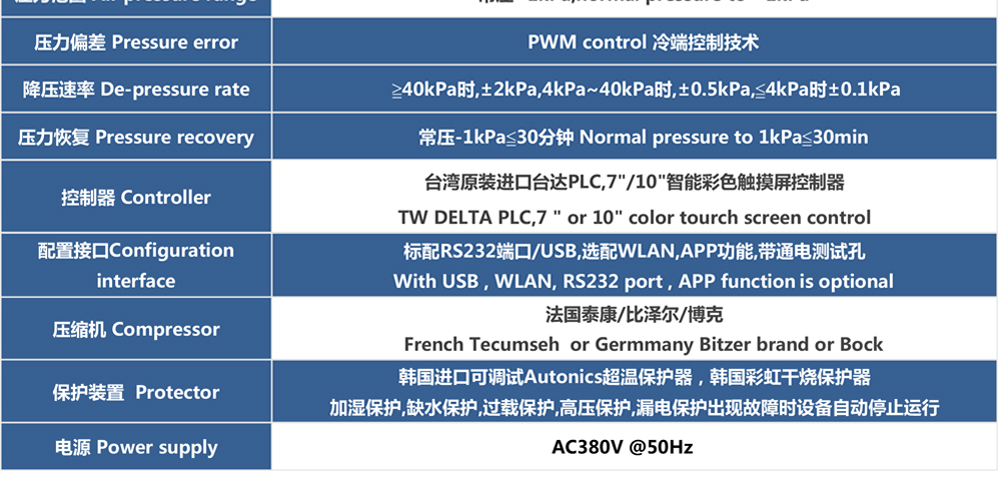 3.外部壓力型框體結(jié)構(gòu)和不銹鋼水箱設(shè)計(jì),合理的空氣循環(huán)系統(tǒng)和科學(xué)布局的加熱、制冷系統(tǒng)。