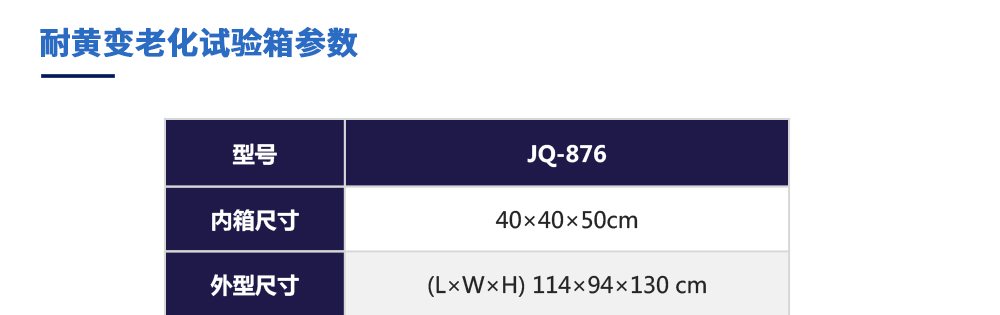 產品型號:JQ-876 品牌:劍 喬 用途:耐黃變老化試驗箱適用于仿真陽光的紫外線輻射及熱度,設備滿足老化與耐黃變2種測試條件,老化是指促進加硫橡膠之劣化,以計算加熱前后拉力及伸長之變化率,一般認為在70 ℃下測咨詢熱線:13829135130