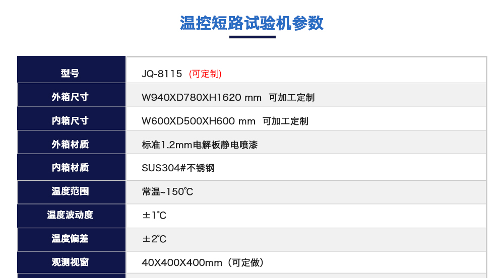 用途:溫控型電池短路試驗機綜合多種電池短路試驗標準要求而設計按標準要求短路裝置必須符合內阻范圍≤5mΩ從而獲得試驗要求的最大短路電流